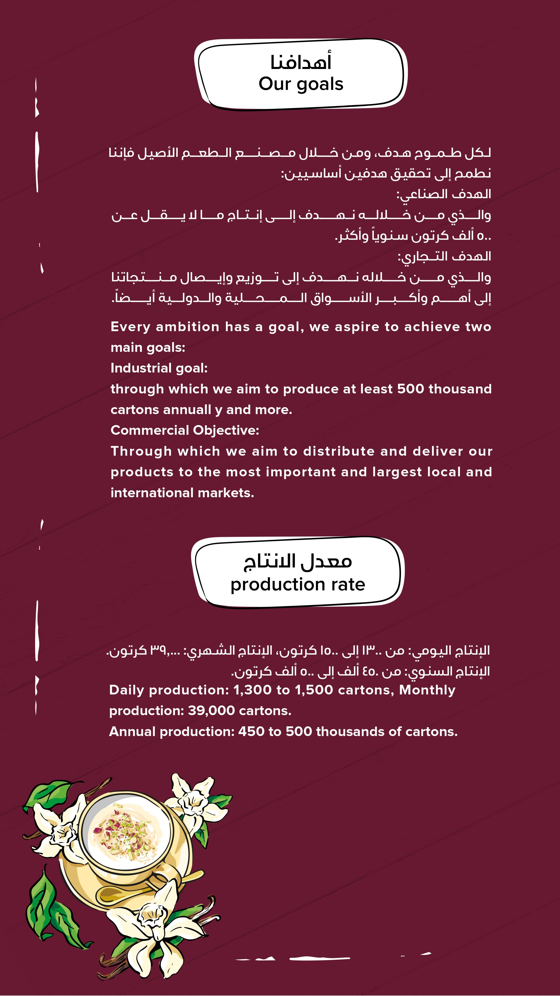 - الهدف التجاري: توزيع منتجاتنا إلى الأسواق المحلية والدولية.